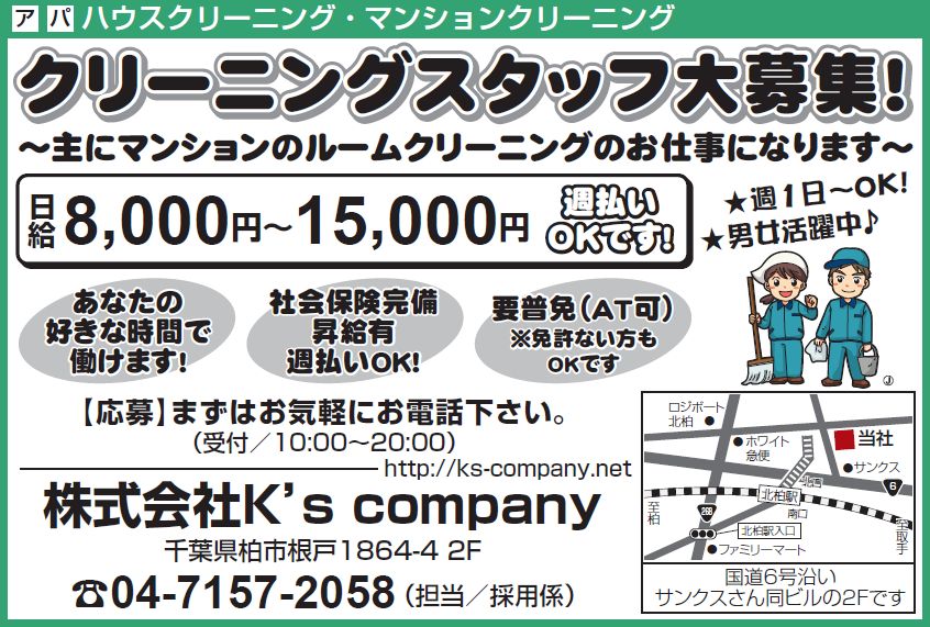 | クリーニングスタッフ大募集 | |