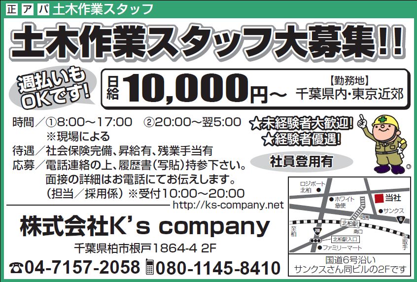 | 土木作業スタッフ大募集 | |